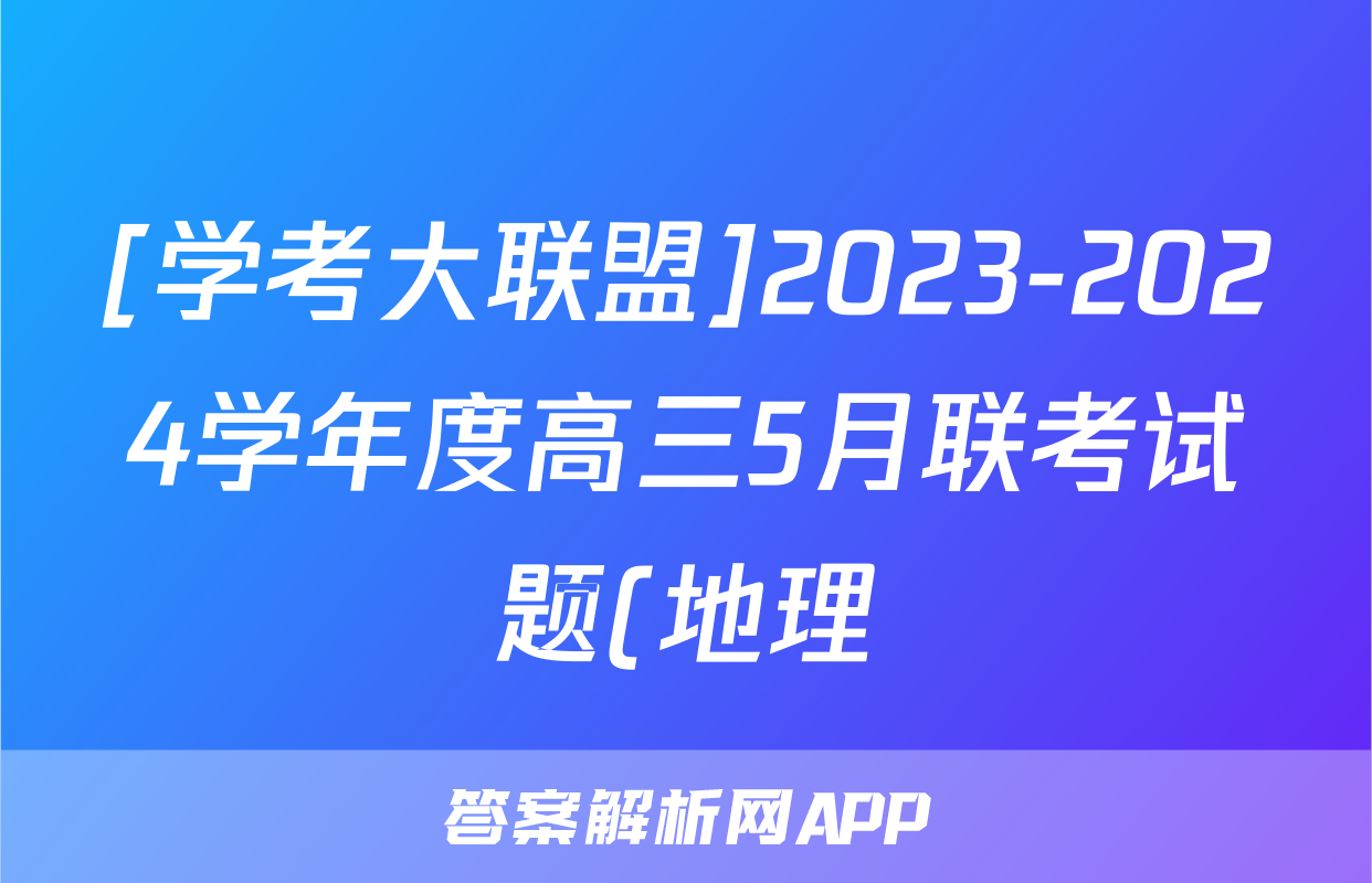 [学考大联盟]2023-2024学年度高三5月联考试题(地理)正在持续更新,目前2024届最新高考模拟示范卷答案网为大家整理了相关试题及答案,供大家查缺补漏,高效提升成绩。