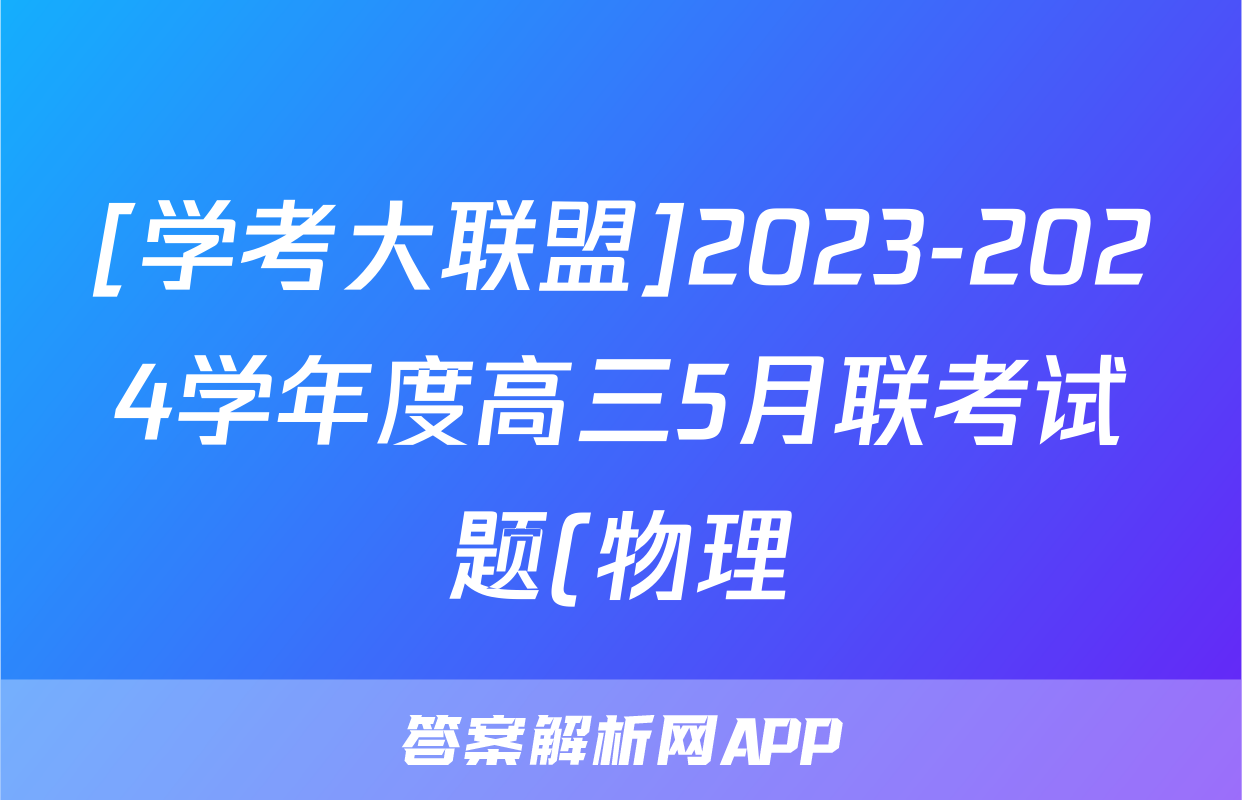 [学考大联盟]2023-2024学年度高三5月联考试题(物理)正在持续更新,目前2024届最新高考模拟示范卷答案网为大家整理了相关试题及答案,供大家查缺补漏,高效提升成绩。