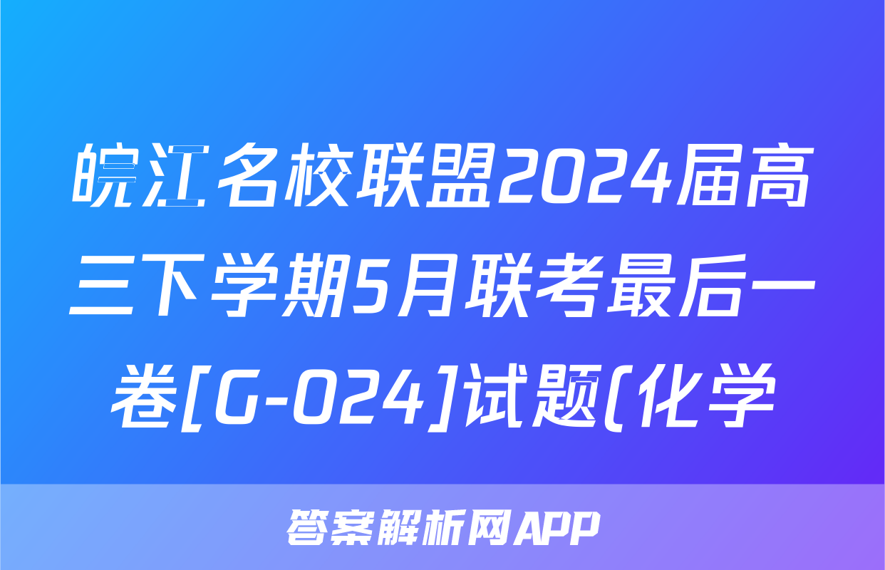 皖江名校联盟2024届高三下学期5月联考最后一卷[G-024]试题(化学)正在持续更新,目前2024届最新高考模拟示范卷答案网为大家整理了相关试题及答案,供大家查缺补漏,高效提升成绩。