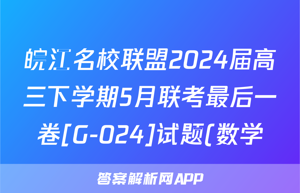 皖江名校联盟2024届高三下学期5月联考最后一卷[G-024]试题(数学)正在持续更新,目前2024届最新高考模拟示范卷答案网为大家整理了相关试题及答案,供大家查缺补漏,高效提升成绩。