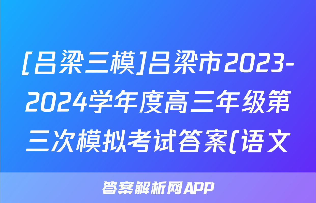 [吕梁三模]吕梁市2023-2024学年度高三年级第三次模拟考试答案(语文)正在持续更新,目前2024届最新高考模拟示范卷答案网为大家整理了相关试题及答案,供大家查缺补漏,高效提升成绩。