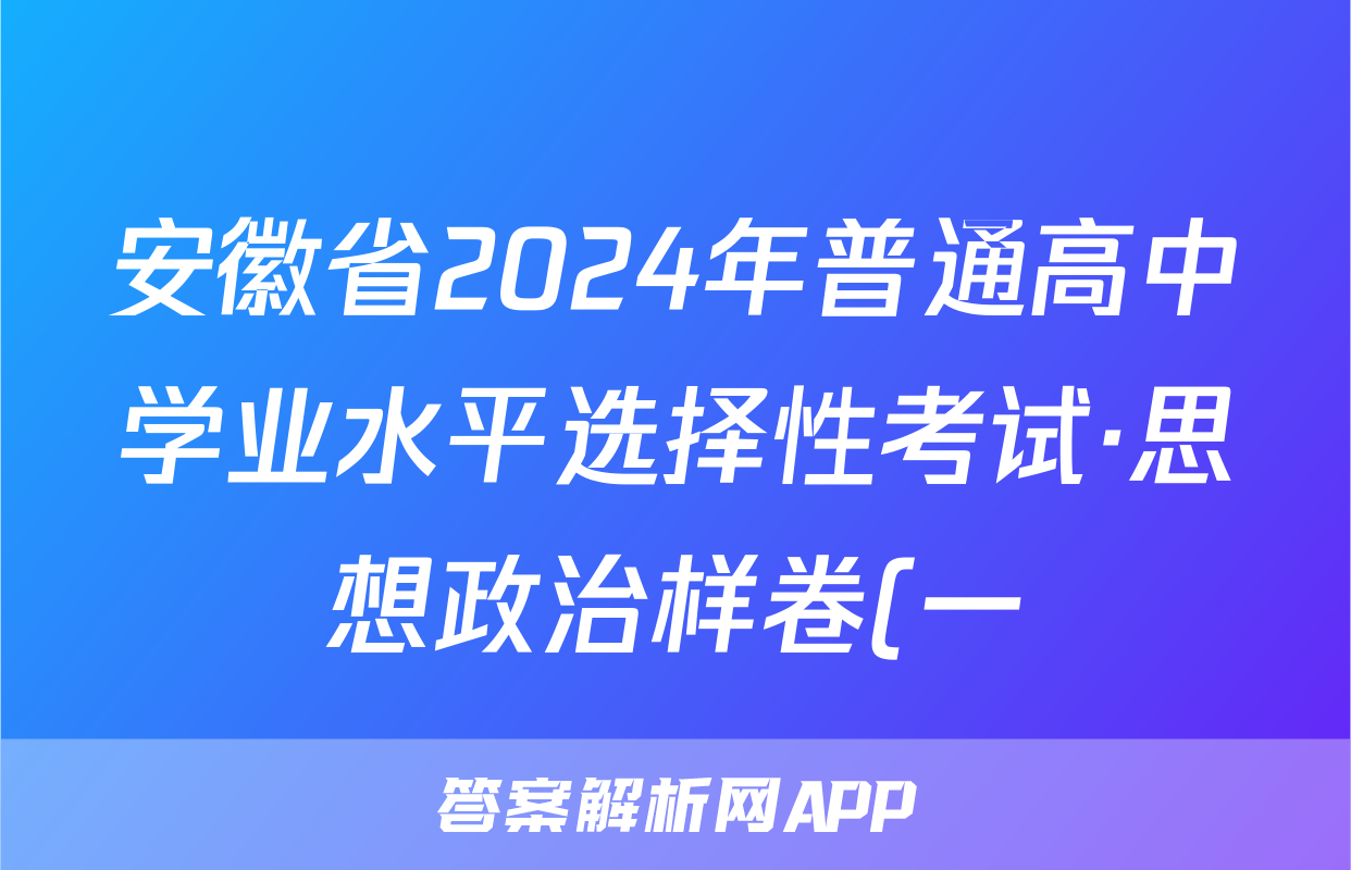 安徽省2024年普通高中学业水平选择性考试·思想政治样卷(一)1[24·(新高考)高考样卷·思想政治·AH]答案正在持续更新,目前2024届最新高考模拟示范卷答案网为大家整理了相关试题及答案,供大家查缺补漏,高效提升成绩。