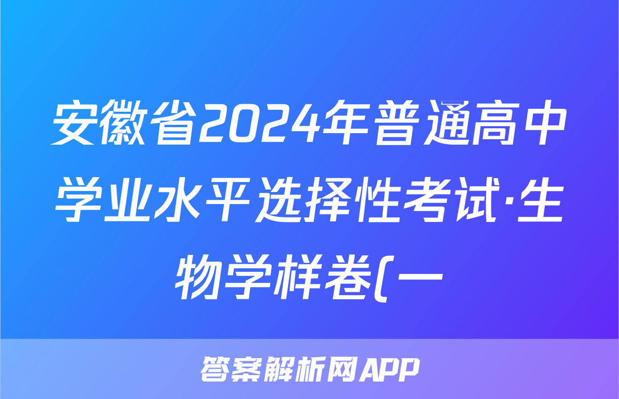 安徽省2024年普通高中学业水平选择性考试·生物学样卷(一)1[24·(新高考)高考样卷·生物学·AH]试题正在持续更新,目前2024届最新高考模拟示范卷答案网为大家整理了相关试题及答案,供大家查缺补漏,高效提升成绩。