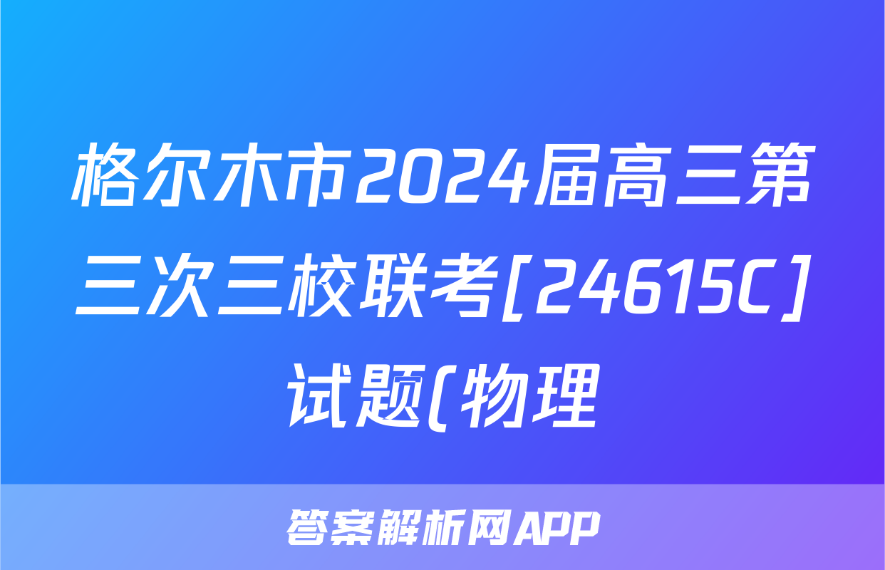 格尔木市2024届高三第三次三校联考[24615C]试题(物理)正在持续更新,目前2024届最新高考模拟示范卷答案网为大家整理了相关试题及答案,供大家查缺补漏,高效提升成绩。