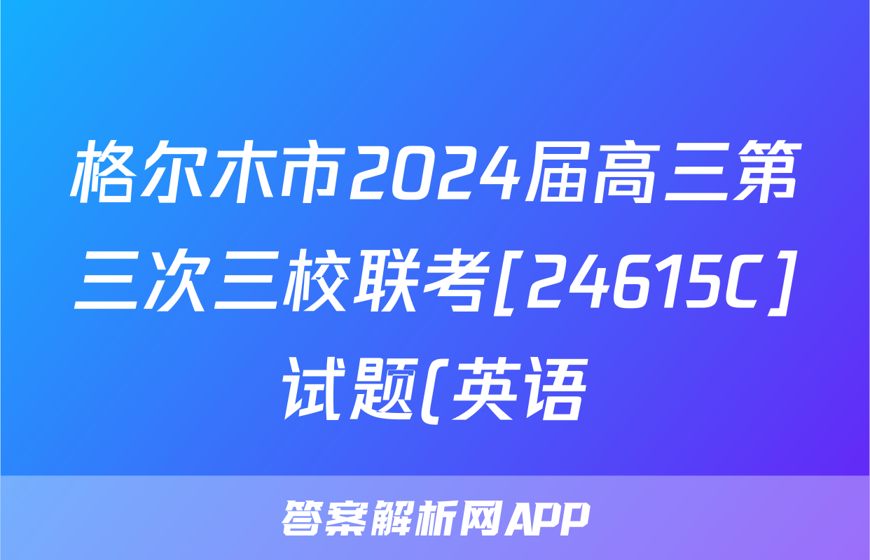 格尔木市2024届高三第三次三校联考[24615C]试题(英语)正在持续更新,目前2024届最新高考模拟示范卷答案网为大家整理了相关试题及答案,供大家查缺补漏,高效提升成绩。