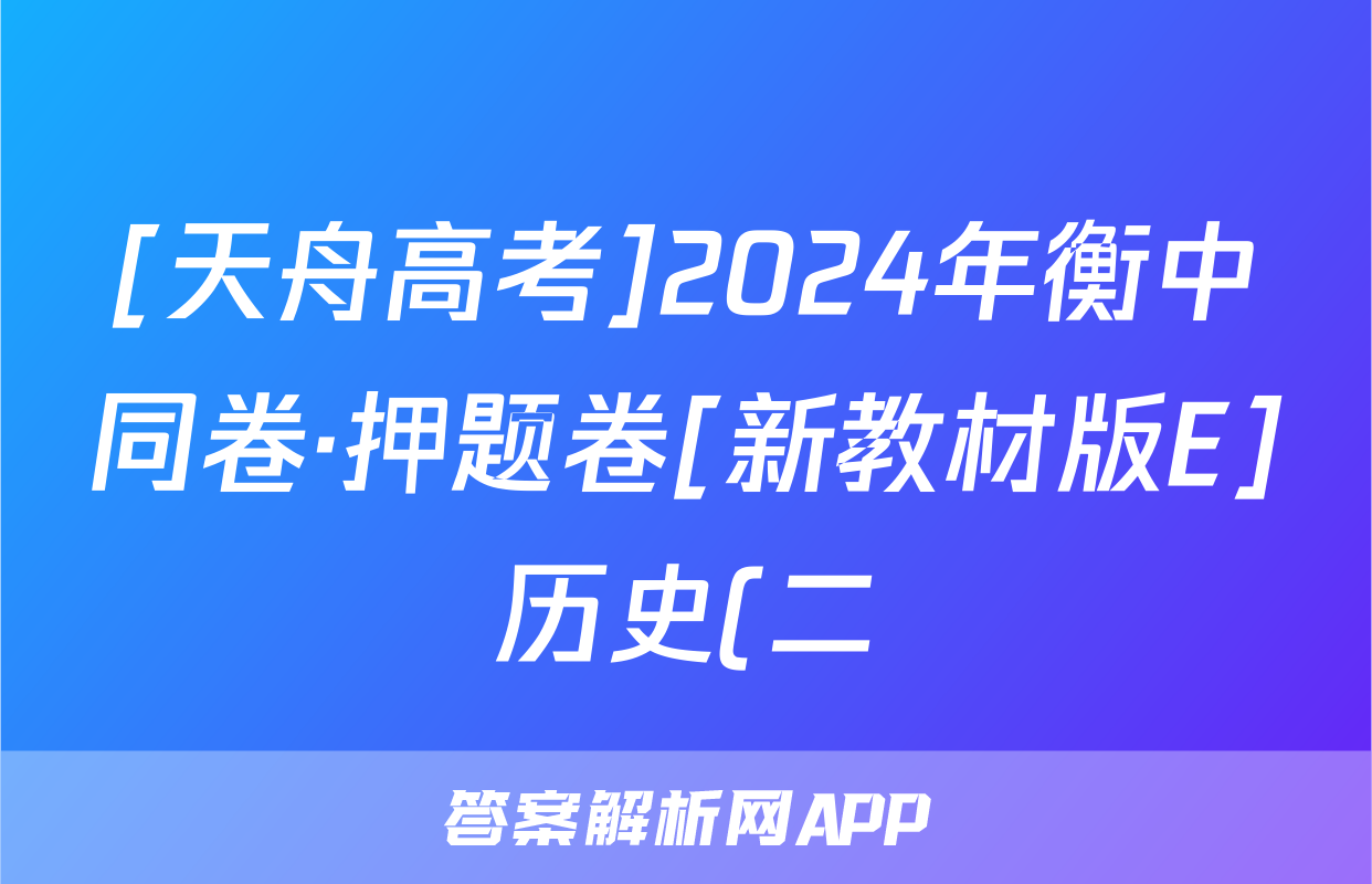 [天舟高考]2024年衡中同卷·押题卷[新教材版E]历史(二)2答案正在持续更新,目前2024届最新高考模拟示范卷答案网为大家整理了相关试题及答案,供大家查缺补漏,高效提升成绩。