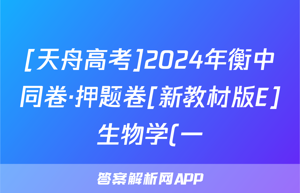 [天舟高考]2024年衡中同卷·押题卷[新教材版E]生物学(一)1试题正在持续更新,目前2024届最新高考模拟示范卷答案网为大家整理了相关试题及答案,供大家查缺补漏,高效提升成绩。