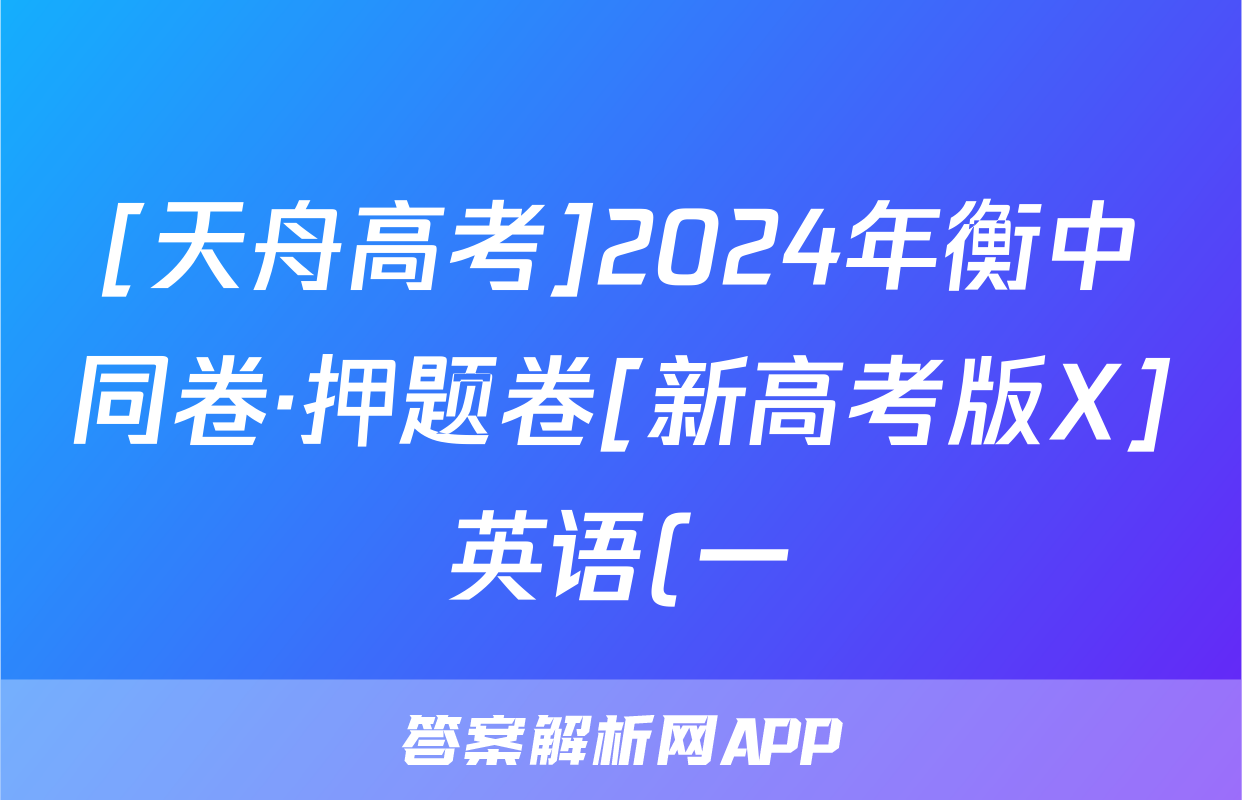 [天舟高考]2024年衡中同卷·押题卷[新高考版X]英语(一)1答案