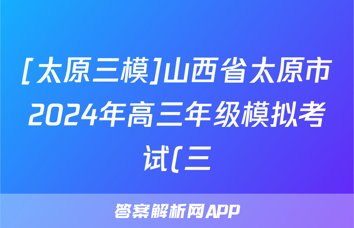 [太原三模]山西省太原市2024年高三年级模拟考试(三)3答案(历史)正在持续更新,目前2024届最新高考模拟示范卷答案网为大家整理了相关试题及答案,供大家查缺补漏,高效提升成绩。