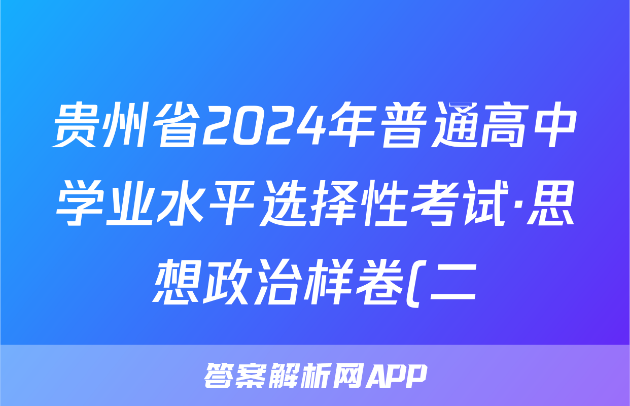 贵州省2024年普通高中学业水平选择性考试·思想政治样卷(二)2[24·(新高考)高考样卷·思想政治·GZ]答案正在持续更新,目前2024届最新高考模拟示范卷答案网为大家整理了相关试题及答案,供大家查缺补漏,高效提升成绩。