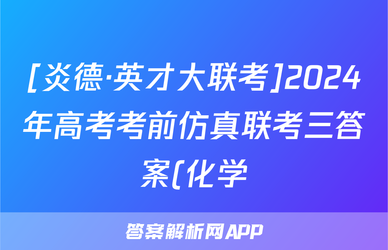[炎德·英才大联考]2024年高考考前仿真联考三答案(化学)正在持续更新,目前2024届最新高考模拟示范卷答案网为大家整理了相关试题及答案,供大家查缺补漏,高效提升成绩。