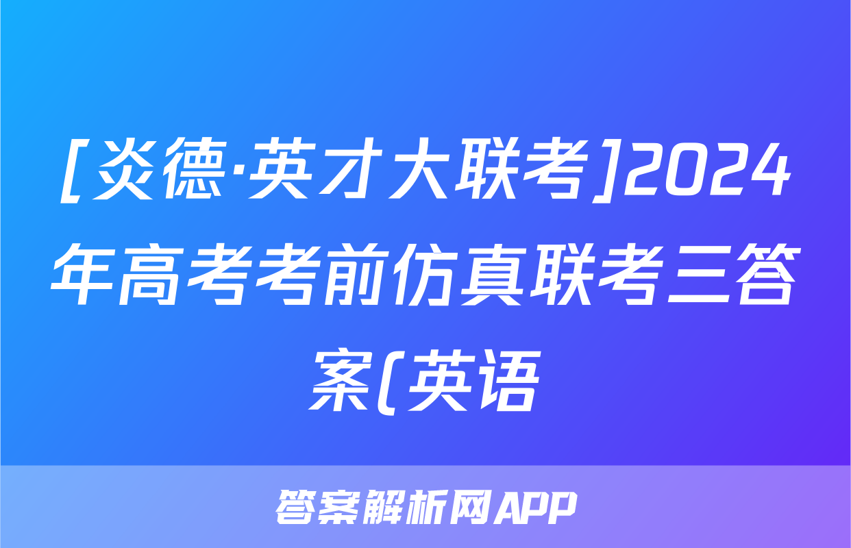 [炎德·英才大联考]2024年高考考前仿真联考三答案(英语)正在持续更新,目前2024届最新高考模拟示范卷答案网为大家整理了相关试题及答案,供大家查缺补漏,高效提升成绩。