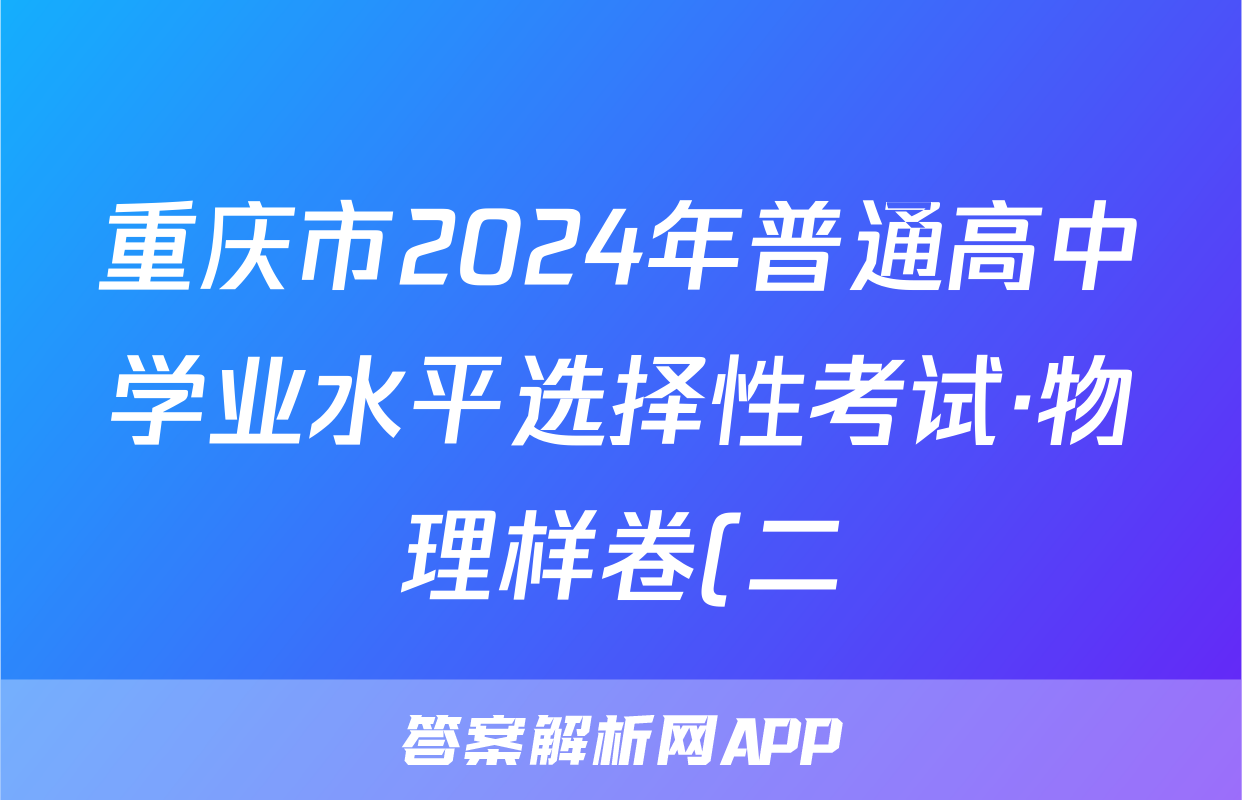 重庆市2024年普通高中学业水平选择性考试·物理样卷(二)2[24·(新高考)高考样卷·物理·CQ]答案正在持续更新,目前2024届最新高考模拟示范卷答案网为大家整理了相关试题及答案,供大家查缺补漏,高效提升成绩。