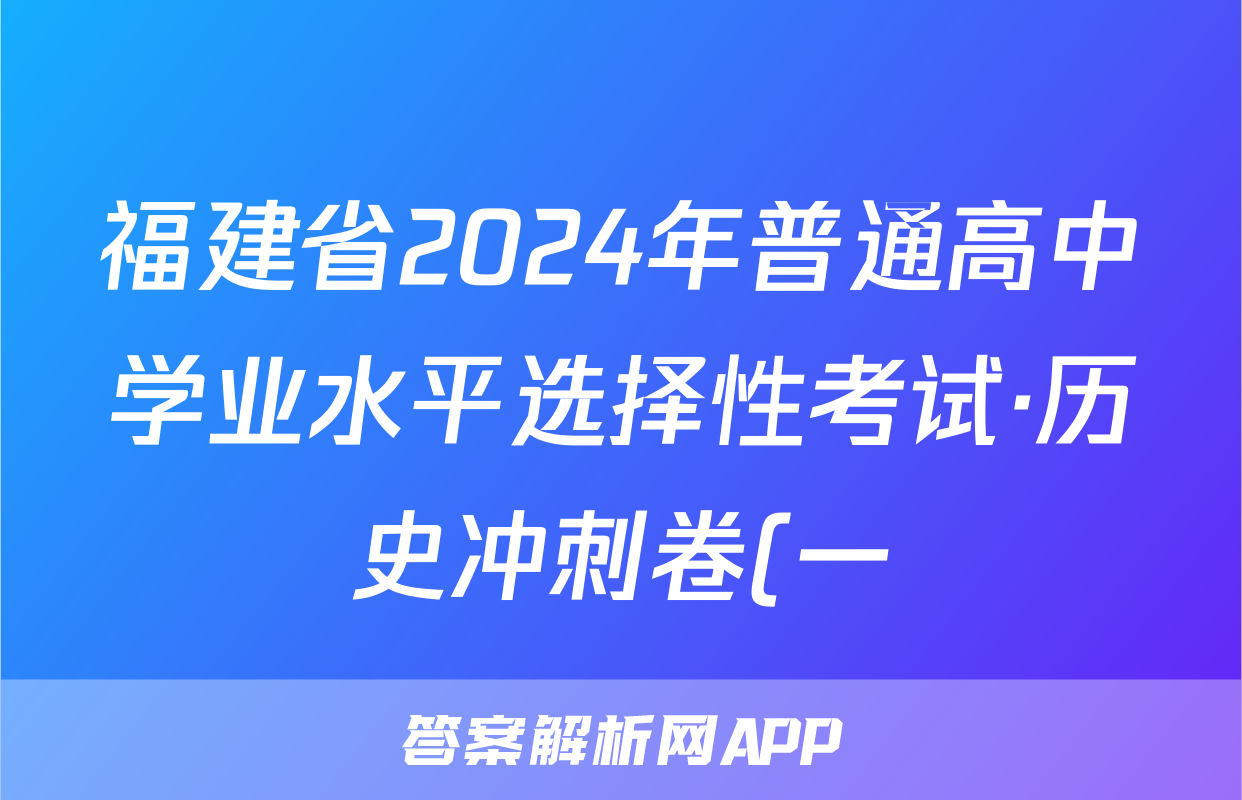 福建省2024年普通高中学业水平选择性考试·历史冲刺卷(一)1[24·(新高考)CCJ·历史·FJ]答案正在持续更新,目前2024届最新高考模拟示范卷答案网为大家整理了相关试题及答案,供大家查缺补漏,高效提升成绩。