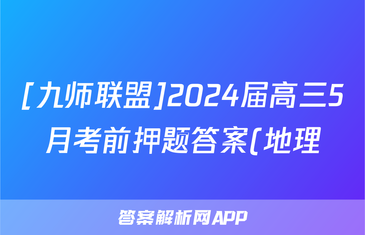 [九师联盟]2024届高三5月考前押题答案(地理)正在持续更新,目前2024届最新高考模拟示范卷答案网为大家整理了相关试题及答案,供大家查缺补漏,高效提升成绩。