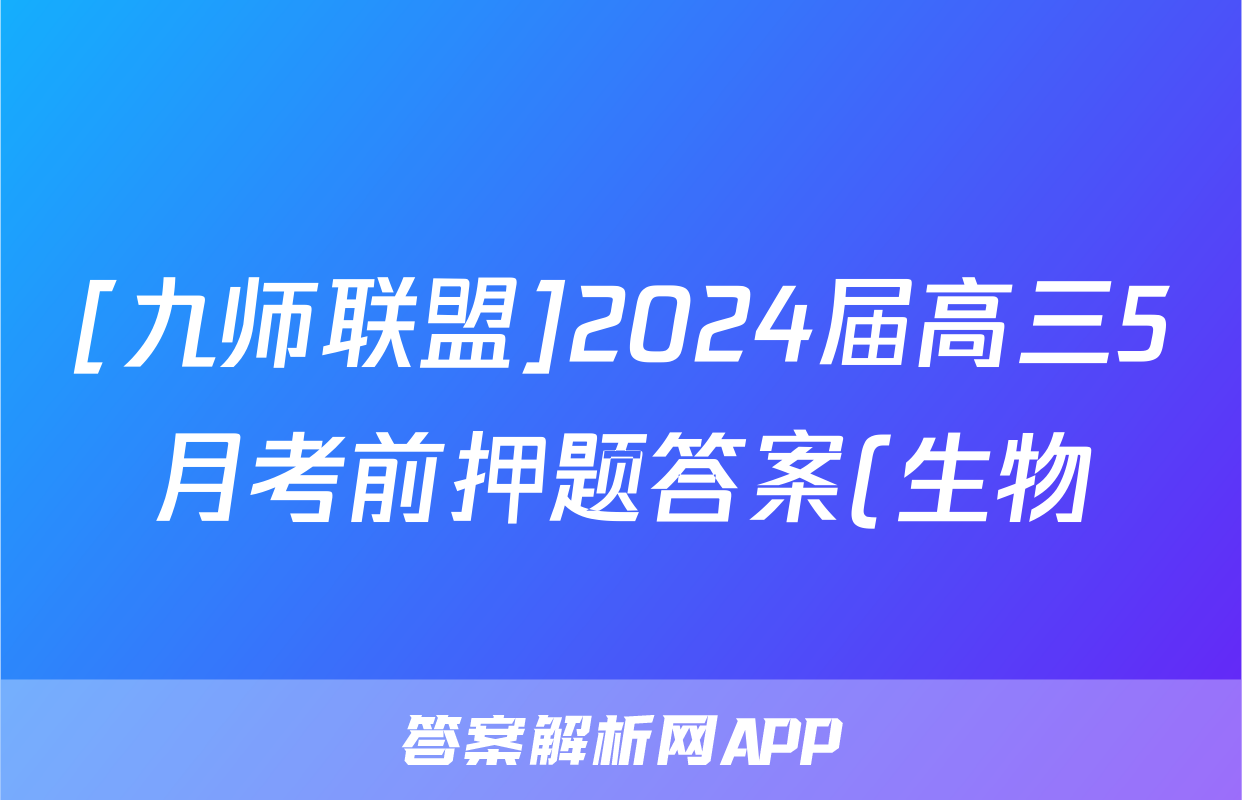 [九师联盟]2024届高三5月考前押题答案(生物)正在持续更新,目前2024届最新高考模拟示范卷答案网为大家整理了相关试题及答案,供大家查缺补漏,高效提升成绩。