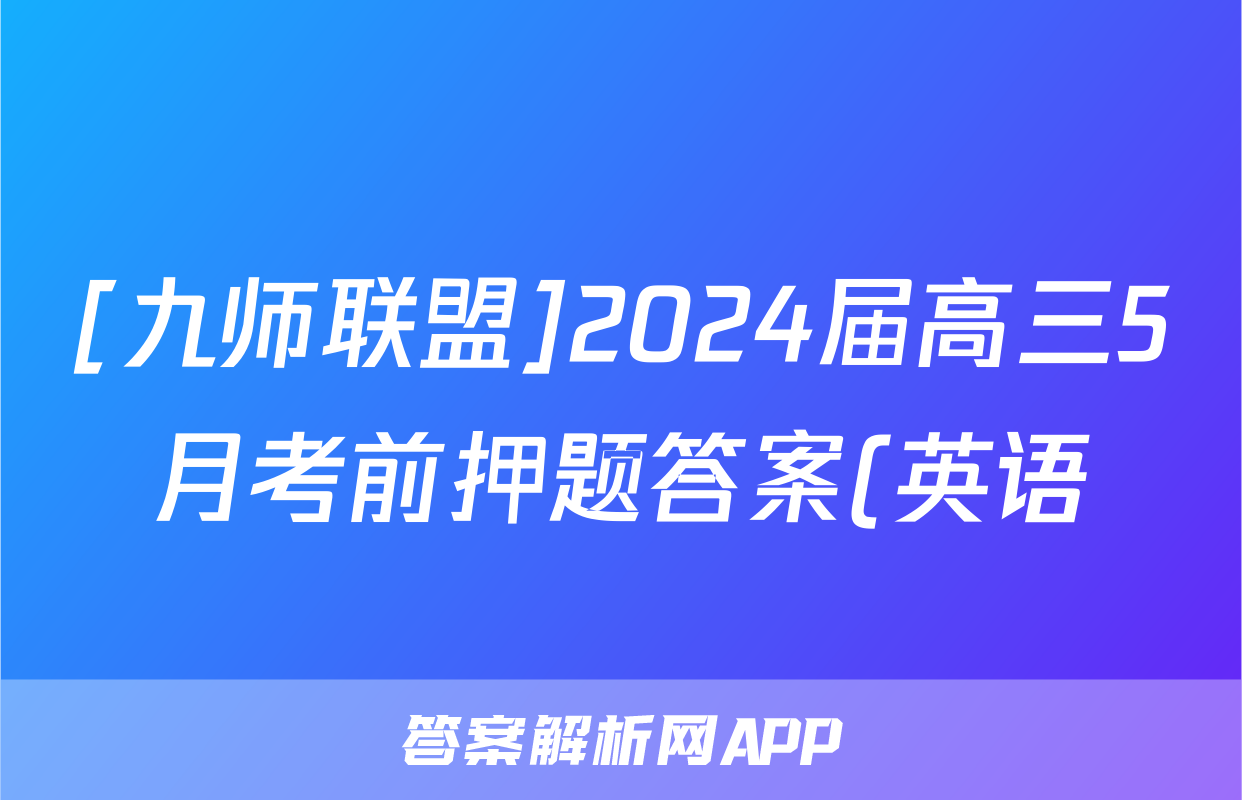 [九师联盟]2024届高三5月考前押题答案(英语)