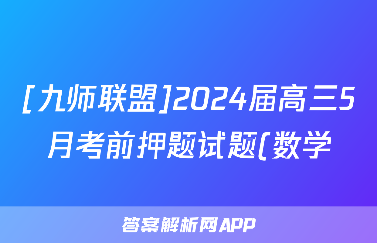 [九师联盟]2024届高三5月考前押题试题(数学)正在持续更新,目前2024届最新高考模拟示范卷答案网为大家整理了相关试题及答案,供大家查缺补漏,高效提升成绩。