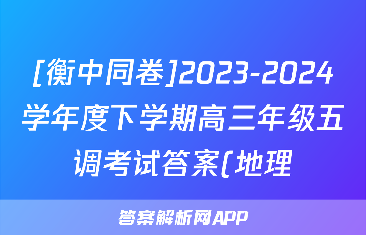 [衡中同卷]2023-2024学年度下学期高三年级五调考试答案(地理)正在持续更新,目前2024届最新高考模拟示范卷答案网为大家整理了相关试题及答案,供大家查缺补漏,高效提升成绩。