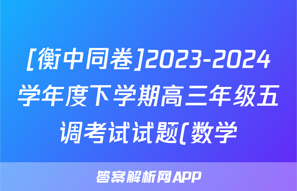 [衡中同卷]2023-2024学年度下学期高三年级五调考试试题(数学)正在持续更新,目前2024届最新高考模拟示范卷答案网为大家整理了相关试题及答案,供大家查缺补漏,高效提升成绩。
