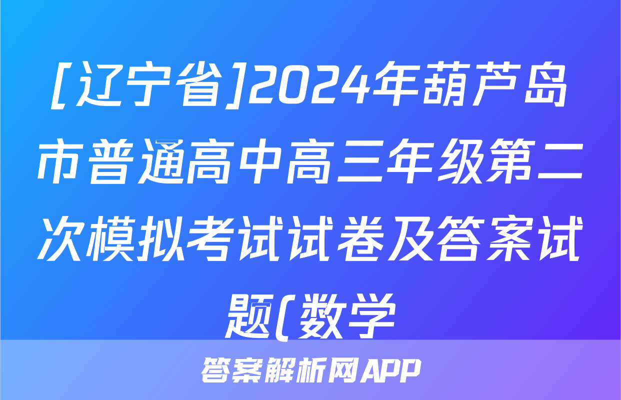 [辽宁省]2024年葫芦岛市普通高中高三年级第二次模拟考试试卷及答案试题(数学)正在持续更新,目前2024届最新高考模拟示范卷答案网为大家整理了相关试题及答案,供大家查缺补漏,高效提升成绩。