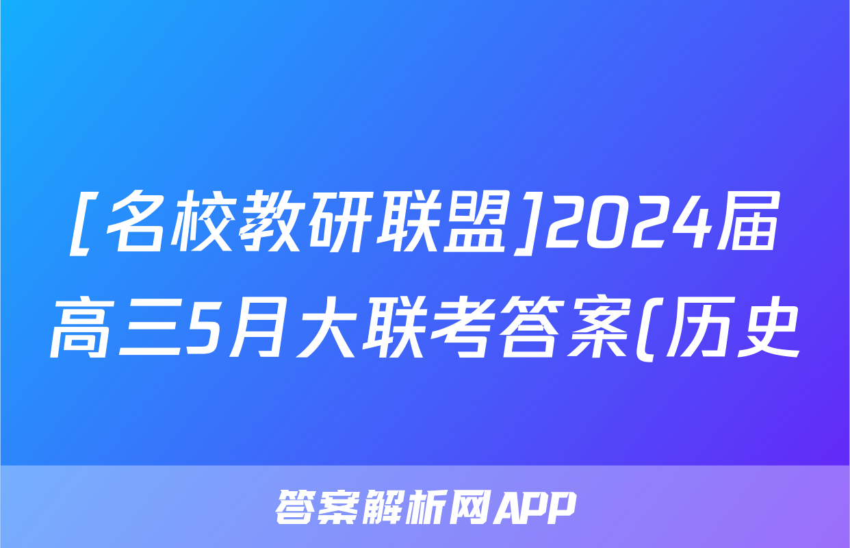 [名校教研联盟]2024届高三5月大联考答案(历史)正在持续更新,目前2024届最新高考模拟示范卷答案网为大家整理了相关试题及答案,供大家查缺补漏,高效提升成绩。