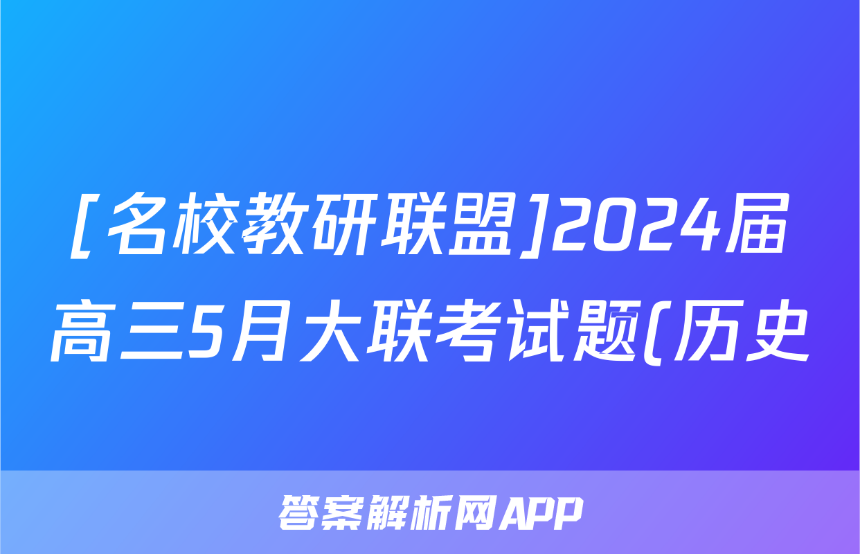 [名校教研联盟]2024届高三5月大联考试题(历史)正在持续更新,目前2024届最新高考模拟示范卷答案网为大家整理了相关试题及答案,供大家查缺补漏,高效提升成绩。