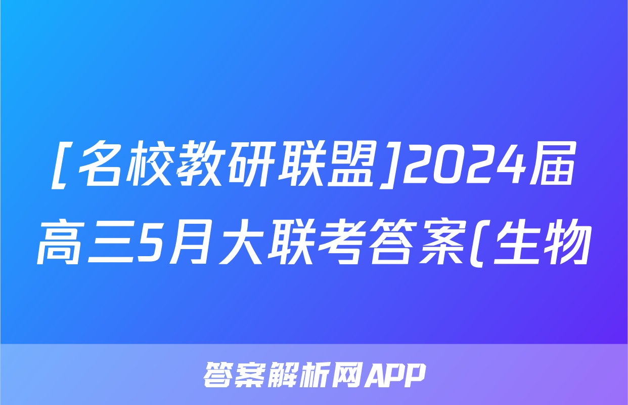 [名校教研联盟]2024届高三5月大联考答案(生物)正在持续更新,目前2024届最新高考模拟示范卷答案网为大家整理了相关试题及答案,供大家查缺补漏,高效提升成绩。