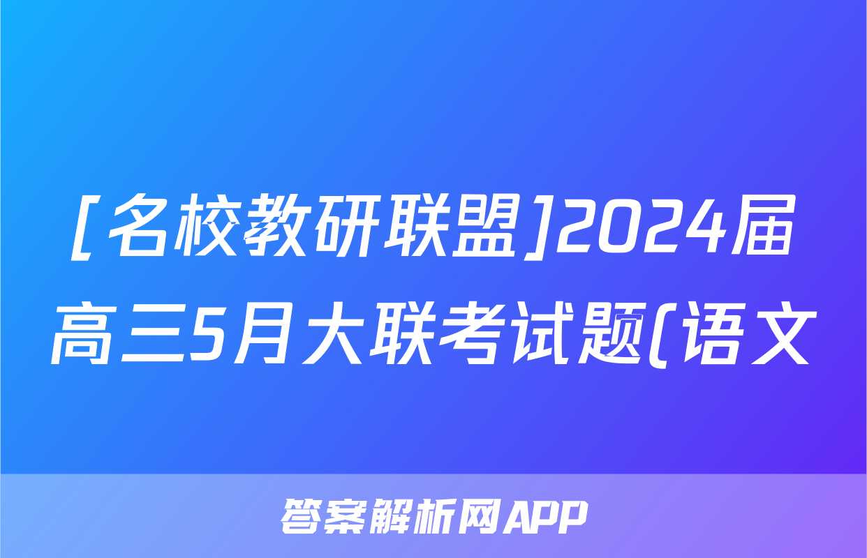 [名校教研联盟]2024届高三5月大联考试题(语文)正在持续更新,目前2024届最新高考模拟示范卷答案网为大家整理了相关试题及答案,供大家查缺补漏,高效提升成绩。
