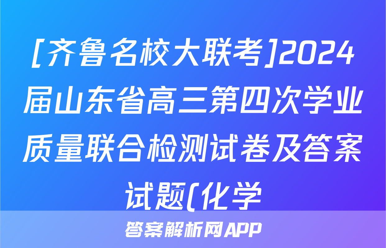 [齐鲁名校大联考]2024届山东省高三第四次学业质量联合检测试卷及答案试题(化学)正在持续更新,目前2024届最新高考模拟示范卷答案网为大家整理了相关试题及答案,供大家查缺补漏,高效提升成绩。
