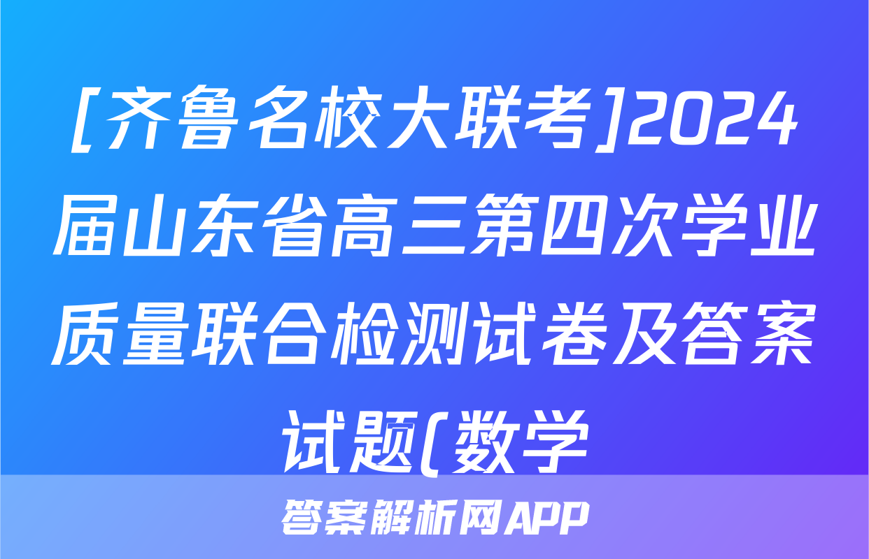[齐鲁名校大联考]2024届山东省高三第四次学业质量联合检测试卷及答案试题(数学)正在持续更新,目前2024届最新高考模拟示范卷答案网为大家整理了相关试题及答案,供大家查缺补漏,高效提升成绩。