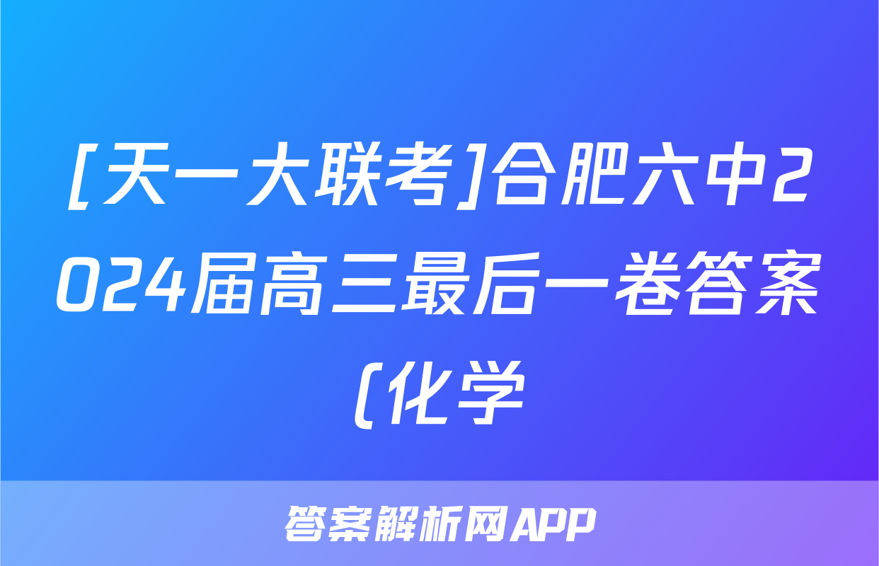 [天一大联考]合肥六中2024届高三最后一卷答案(化学)正在持续更新,目前2024届最新高考模拟示范卷答案网为大家整理了相关试题及答案,供大家查缺补漏,高效提升成绩。