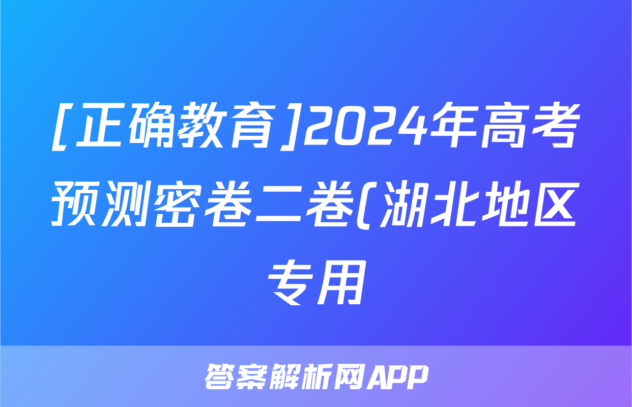 [正确教育]2024年高考预测密卷二卷(湖北地区专用)生物(湖北)试题正在持续更新,目前2024届最新高考模拟示范卷答案网为大家整理了相关试题及答案,供大家查缺补漏,高效提升成绩。