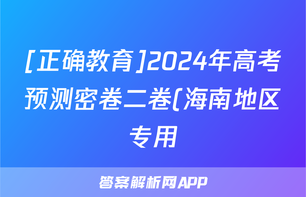 [正确教育]2024年高考预测密卷二卷(海南地区专用)地理(海南)答案正在持续更新,目前2024届最新高考模拟示范卷答案网为大家整理了相关试题及答案,供大家查缺补漏,高效提升成绩。