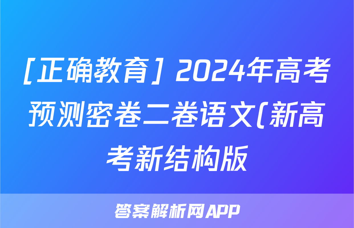 [正确教育] 2024年高考预测密卷二卷语文(新高考新结构版)答案正在持续更新,目前2024届最新高考模拟示范卷答案网为大家整理了相关试题及答案,供大家查缺补漏,高效提升成绩。