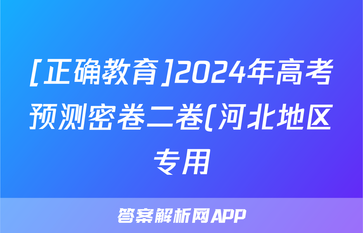 3、正确教育 2024年高考预测密卷二卷(河北地区专用)政治(河北)答案