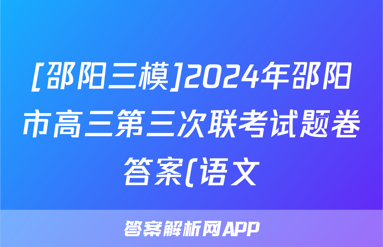 [邵阳三模]2024年邵阳市高三第三次联考试题卷答案(语文)正在持续更新,目前2024届最新高考模拟示范卷答案网为大家整理了相关试题及答案,供大家查缺补漏,高效提升成绩。