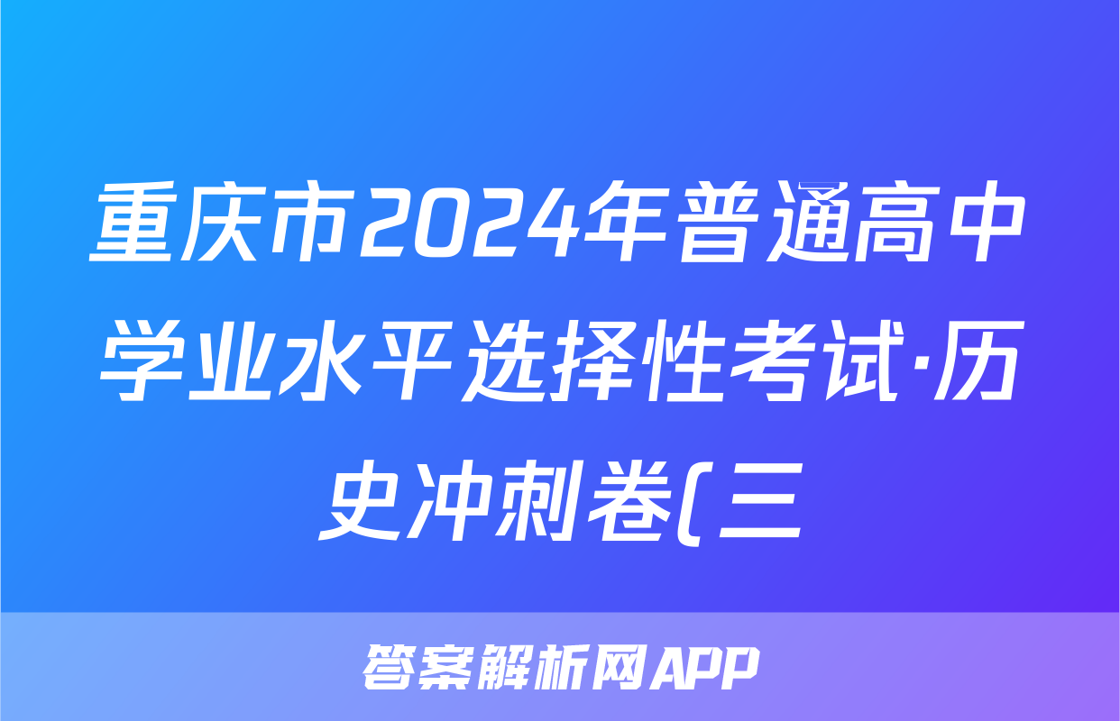 重庆市2024年普通高中学业水平选择性考试·历史冲刺卷(三)3[24·(新高考)CCJ·历史·CQ]答案正在持续更新,目前2024届最新高考模拟示范卷答案网为大家整理了相关试题及答案,供大家查缺补漏,高效提升成绩。