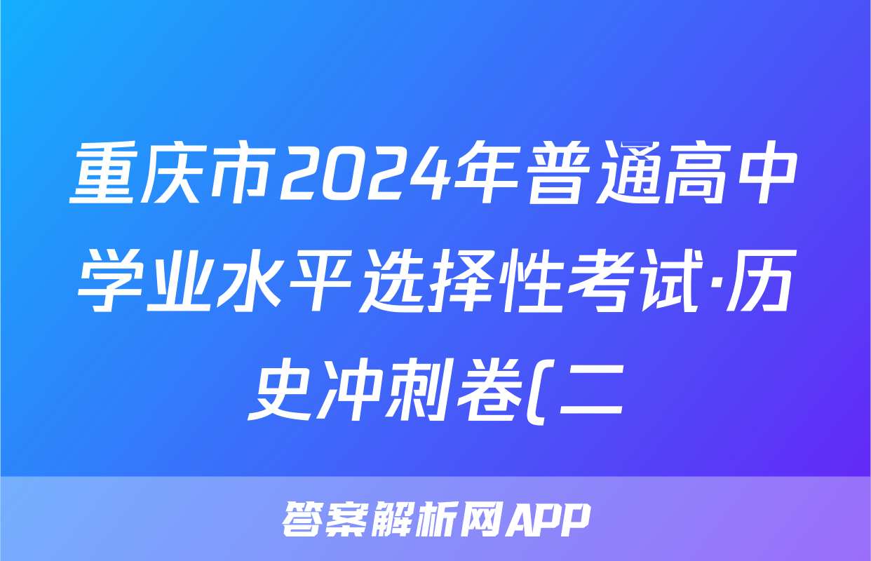 重庆市2024年普通高中学业水平选择性考试·历史冲刺卷(二)2[24·(新高考)CCJ·历史·CQ]答案正在持续更新,目前2024届最新高考模拟示范卷答案网为大家整理了相关试题及答案,供大家查缺补漏,高效提升成绩。