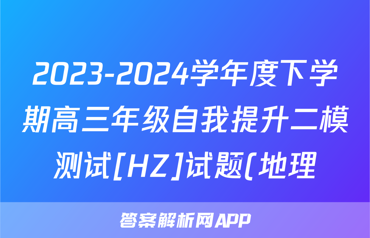 2023-2024学年度下学期高三年级自我提升二模测试[HZ]试题(地理)正在持续更新,目前2024届最新高考模拟示范卷答案网为大家整理了相关试题及答案,供大家查缺补漏,高效提升成绩。