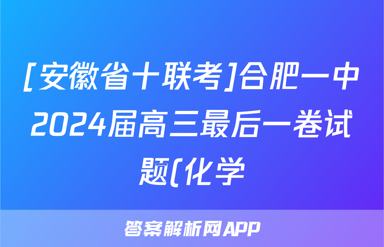 [安徽省十联考]合肥一中2024届高三最后一卷试题(化学)正在持续更新,目前2024届最新高考模拟示范卷答案网为大家整理了相关试题及答案,供大家查缺补漏,高效提升成绩。