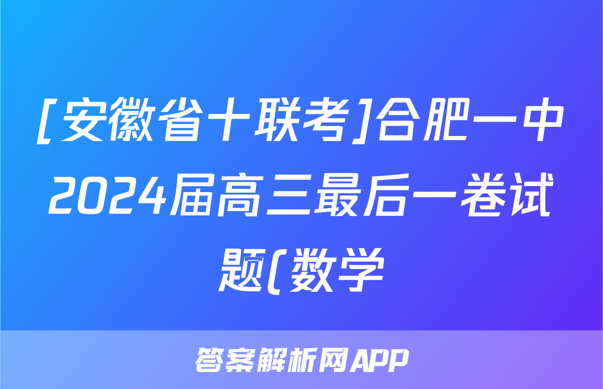 [安徽省十联考]合肥一中2024届高三最后一卷试题(数学)正在持续更新,目前2024届最新高考模拟示范卷答案网为大家整理了相关试题及答案,供大家查缺补漏,高效提升成绩。