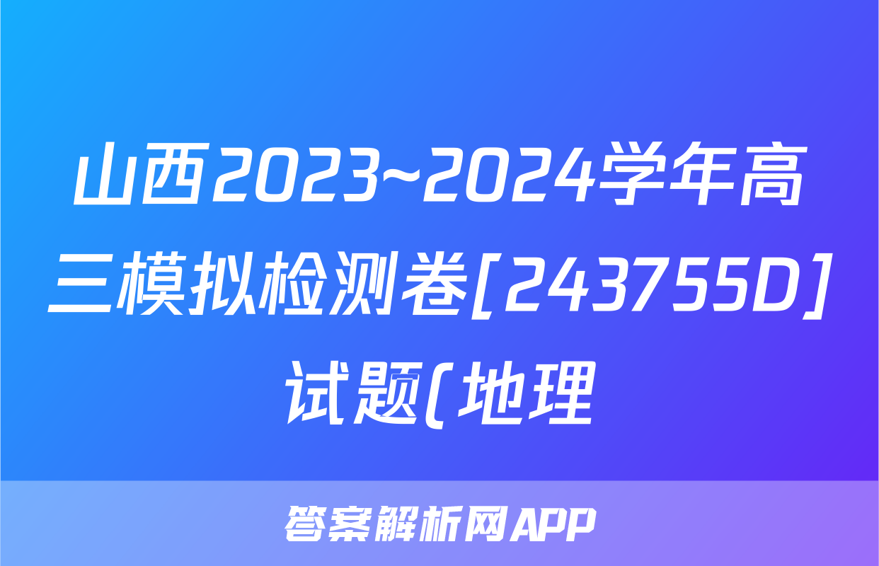 山西2023~2024学年高三模拟检测卷[243755D]试题(地理)正在持续更新,目前2024届最新高考模拟示范卷答案网为大家整理了相关试题及答案,供大家查缺补漏,高效提升成绩。