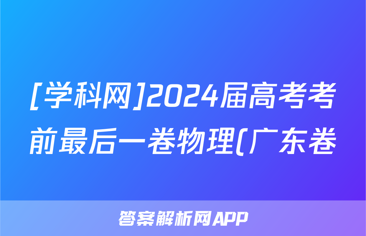 [学科网]2024届高考考前最后一卷物理(广东卷)试题正在持续更新,目前2024届最新高考模拟示范卷答案网为大家整理了相关试题及答案,供大家查缺补漏,高效提升成绩。