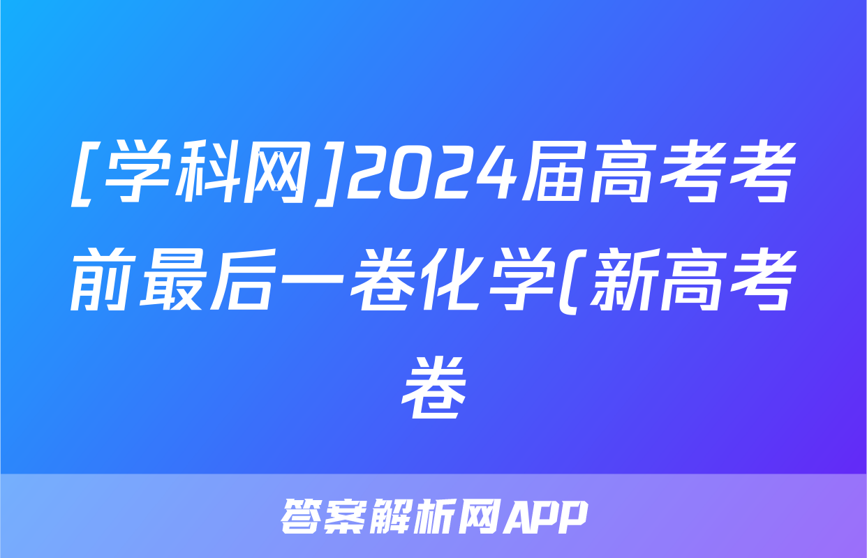 [学科网]2024届高考考前最后一卷化学(新高考卷)(新教材)答案正在持续更新,目前2024届最新高考模拟示范卷答案网为大家整理了相关试题及答案,供大家查缺补漏,高效提升成绩。