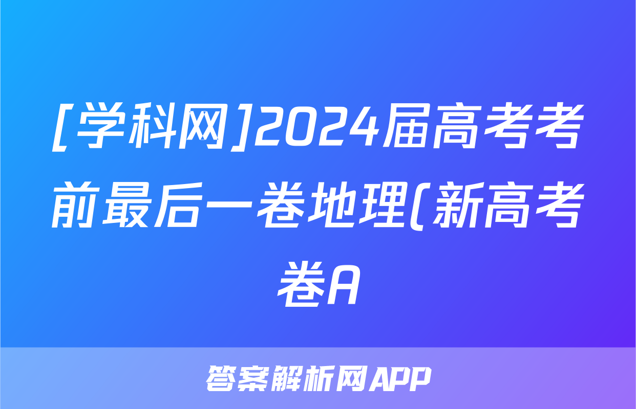 [学科网]2024届高考考前最后一卷地理(新高考卷A)(新教材)试题正在持续更新,目前2024届最新高考模拟示范卷答案网为大家整理了相关试题及答案,供大家查缺补漏,高效提升成绩。
