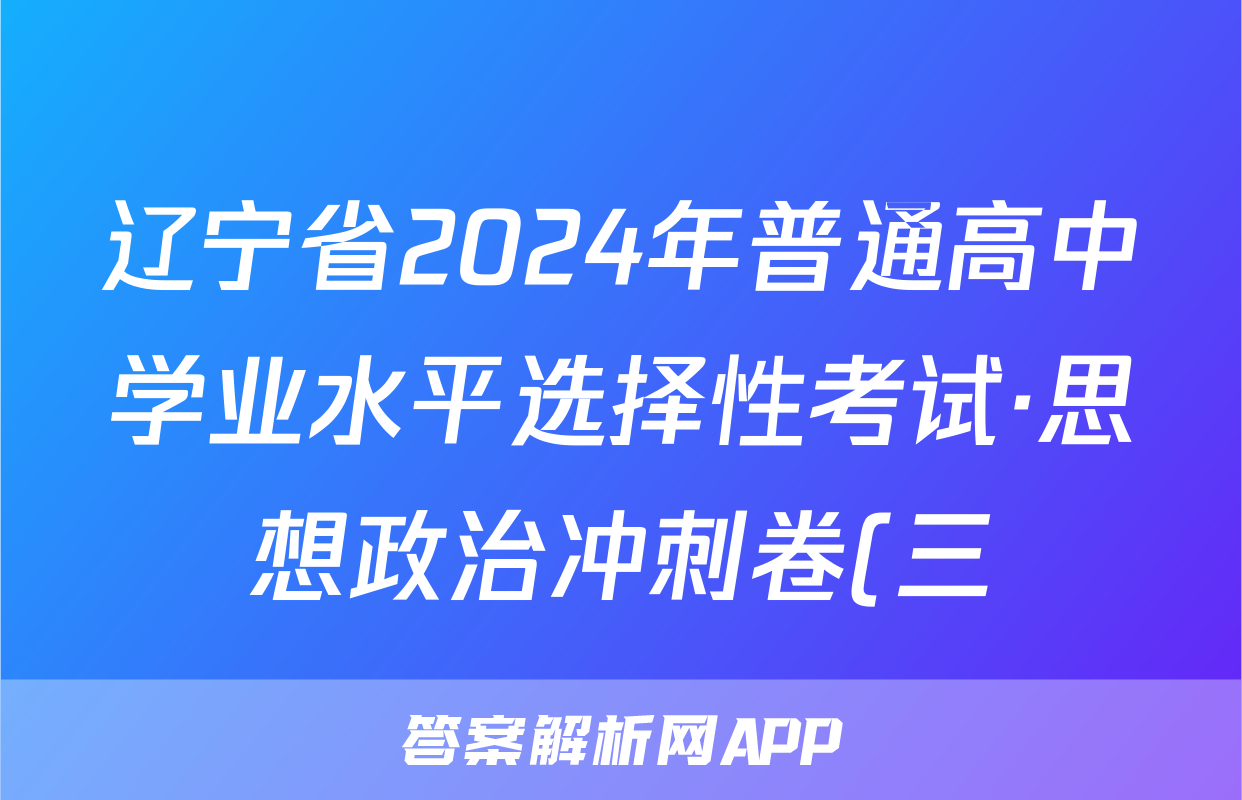 辽宁省2024年普通高中学业水平选择性考试·思想政治冲刺卷(三)3[24·(新高考)CCJ·思想政治·LN]答案正在持续更新,目前2024届最新高考模拟示范卷答案网为大家整理了相关试题及答案,供大家查缺补漏,高效提升成绩。
