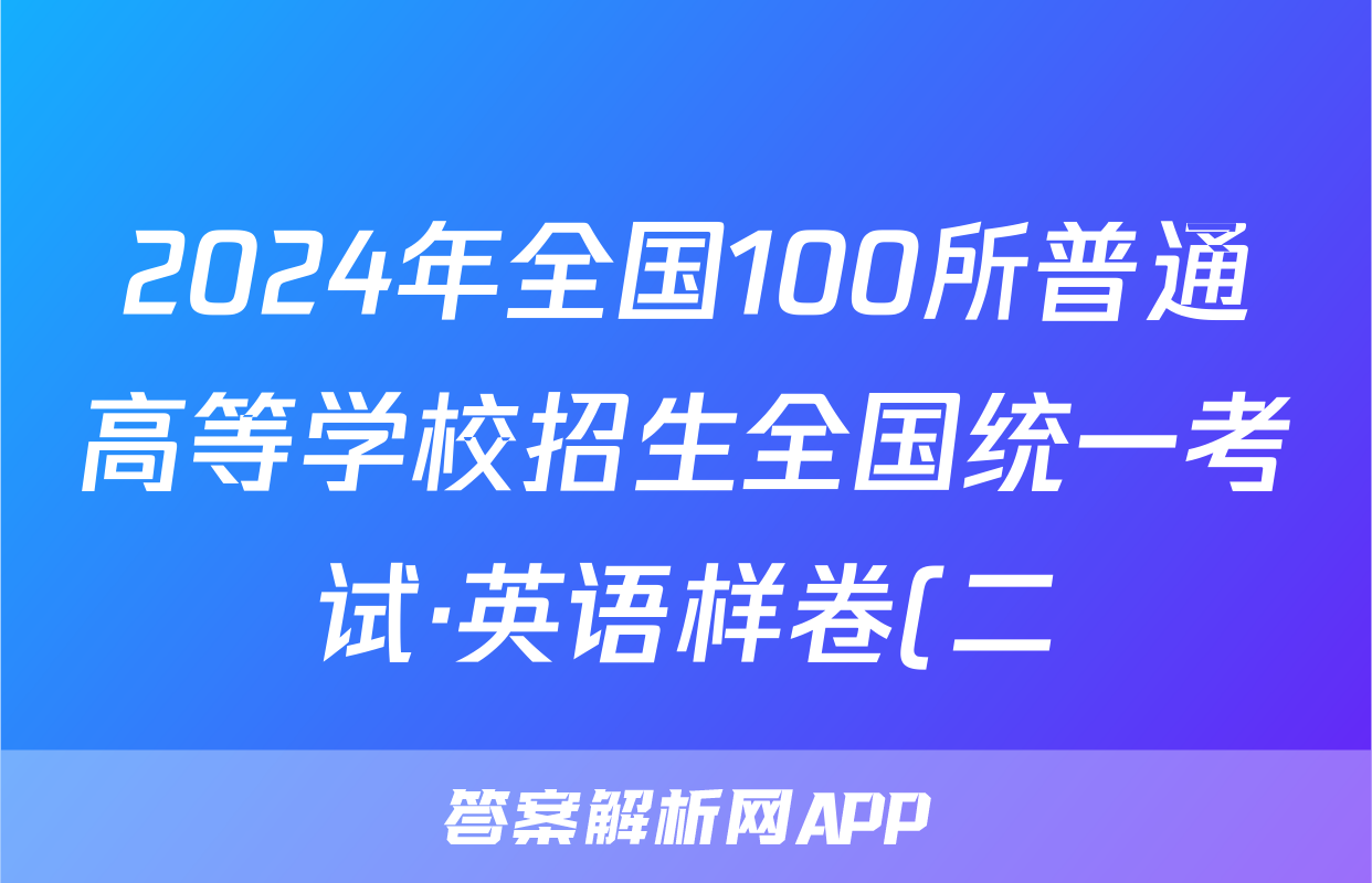2024年全国100所普通高等学校招生全国统一考试·英语样卷(二)2[24·(新高考)高考样卷·英语·G DONG]答案正在持续更新,目前2024届最新高考模拟示范卷答案网为大家整理了相关试题及答案,供大家查缺补漏,高效提升成绩。