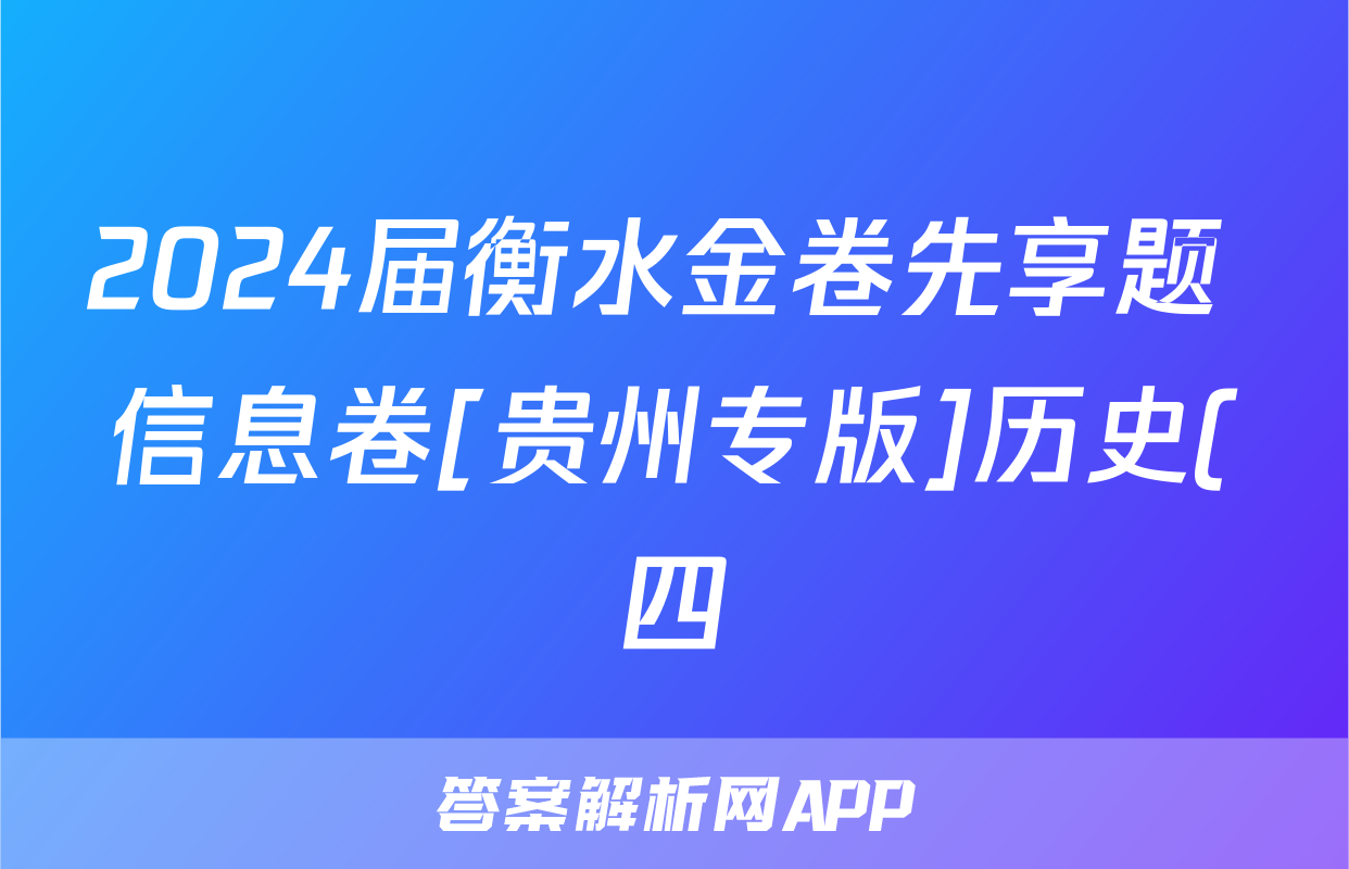 2024届衡水金卷先享题 信息卷[贵州专版]历史(四)4答案正在持续更新,目前2024届最新高考模拟示范卷答案网为大家整理了相关试题及答案,供大家查缺补漏,高效提升成绩。