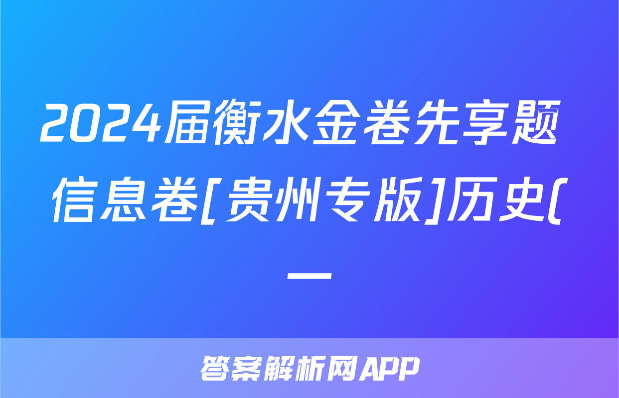 2024届衡水金卷先享题 信息卷[贵州专版]历史(一)1答案正在持续更新,目前2024届最新高考模拟示范卷答案网为大家整理了相关试题及答案,供大家查缺补漏,高效提升成绩。
